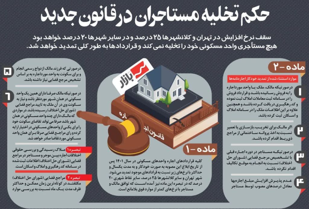 برای دانستن قانون جدید حکم تخلیه مستاجر تنها باید به بهترین وکیل در رشت مراجعه کنید و مشکلتان را با وی در میان بگذارید. می توانید هزینه وکیل برای حکم تخلیه را مطالعه کنید.